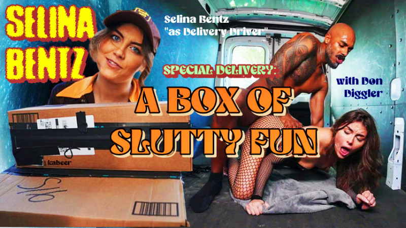 Story - Delivery driver Selina Bentz sees packages all day long, but when she makes a drop off at Don Diggler's house, even she's impressed by the size of his package. When a bunch of sex toys tumble out of an open box, Selina asks Don to join her in trying them out. In the back of her truck, she slips on a fishnet body stocking and they put some cuffs, a flogger, a big vibrator--and Don's big hardon--to very good use.